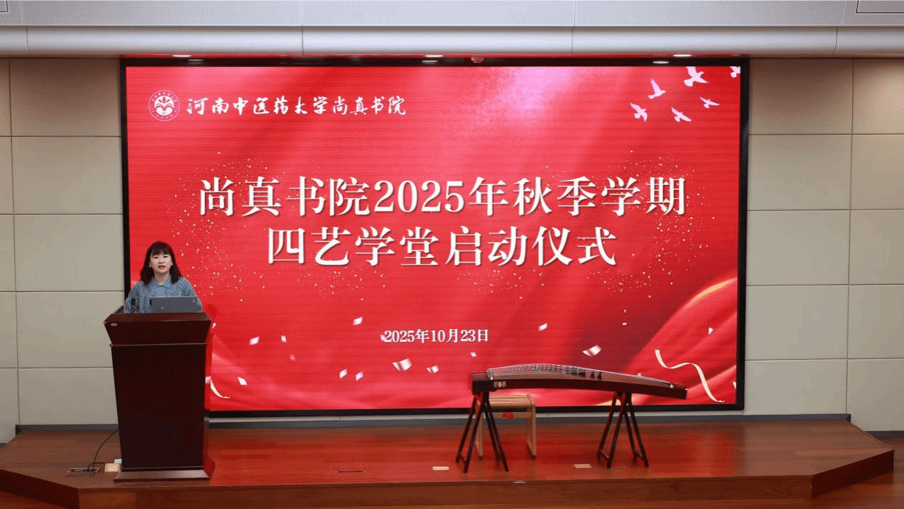 随后,四艺学堂本学期首场讲座同步开讲。本次讲座由中国音乐学院高级教师郑宗楠主讲,主题为“无用之用,方为大用——从‘外见’到‘内化’的古筝艺术”。郑宗楠以“美育是生活的‘灵丹妙药’”为切入点,巧妙关联中医药文化与美育:“美育注重滋养身心、提升精神境界,这与中医药‘治未病’、‘防患于未然’的健康理念本质相通,都是从根源上守护人的身心和谐。”她还系统梳理了古筝发展的历史脉络,解析其“岳山”“雁行”等部件蕴含的自然意象,并用经典曲目《春江花月夜》举例,带领师生感受古筝旋律中“江天一色、明月东升”的生态美学。“古筝或许不能直接满足物质需求,但它能在快节奏的生活中为我们守住一片精神栖息地。”郑宗楠强调,在AI技术快速发展的时代,审美力将成为人与人之间差异化竞争的核心竞争力,而传统文化正是培育审美力的重要土壤。这场兼具专业性与感染力的讲座,让师生对“美育与中医药文化融合”的内涵有了更深刻的认知。