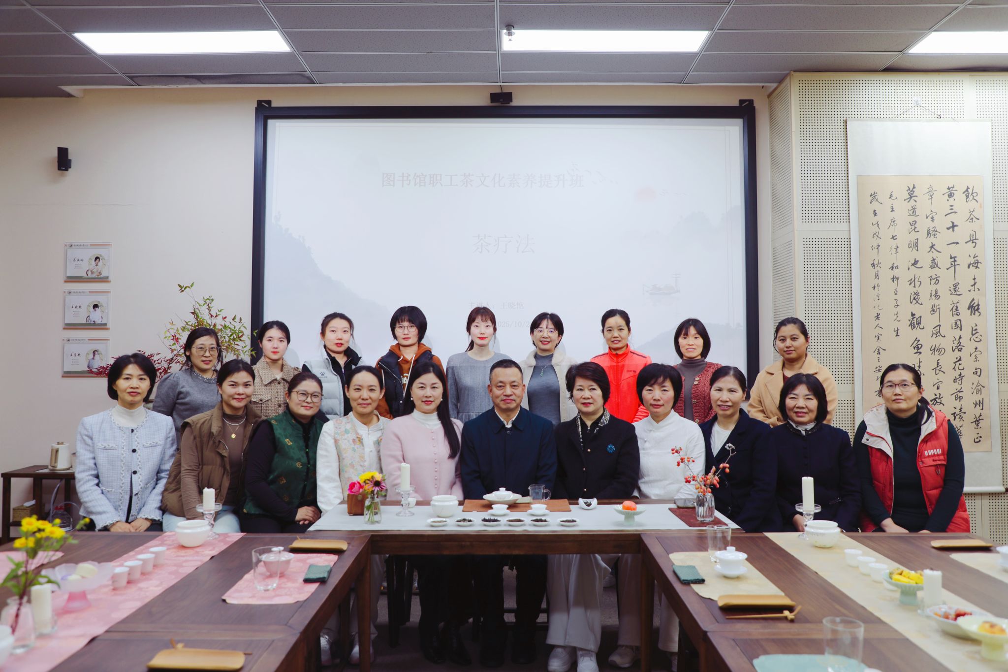 举办本次素养提升班是落实学校第二课堂部署精神、加强馆员队伍建设、丰富职工文化生活的重要举措,得到全馆同仁积极响应。图书馆领导班子、科室主任及一线工作人员共20人齐聚一堂,共同开启了一段浸润身心的茶文化之旅。