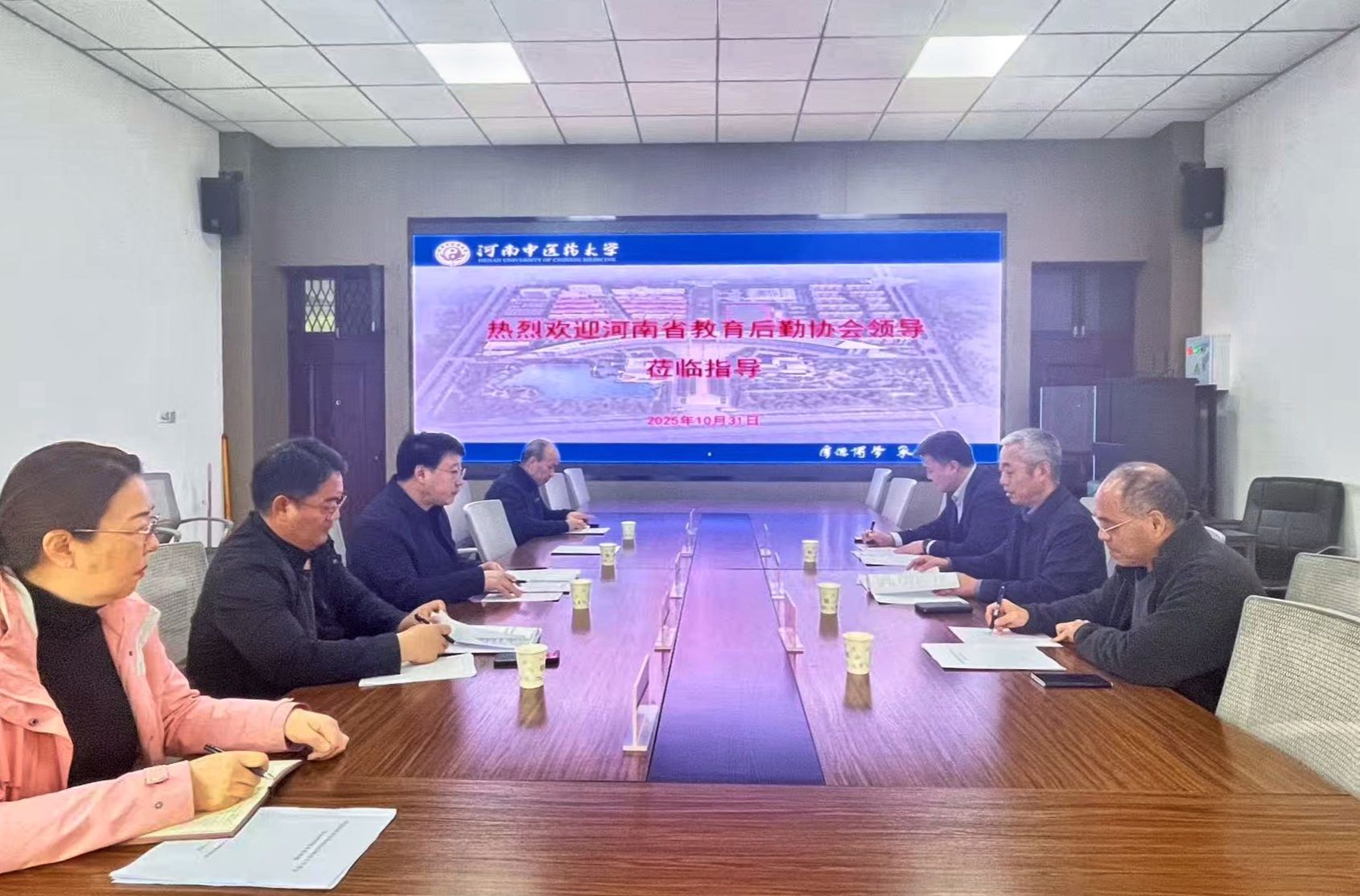 本网讯(文/图 何卫玲)2025年10月31日,河南省教育后勤协会副会长冯轩友一行莅临我校,就省教育后勤协会后勤育人专业委员会筹备工作进行调研指导。副校长赵焕东、后勤服务中心主任孟肖飞、副主任张占正及相关科室负责同志参加座谈。