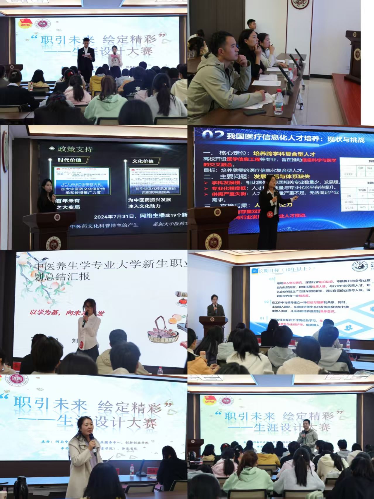 本网讯(文/图 刘淘淘)为加强大学生生涯教育,引导树立正确的成才观与就业观,由校就业创业指导服务中心(创新创业学院)主办,中医学院(仲景学院)、仲景书院承办的“职引未来,绘定精彩”生涯设计大赛决赛,于2025年11月3日在12号楼仲景学堂成功举办。大赛特邀药学院分团委书记胡春月老师、学工部研工部就业服务科孙慧娟老师及第一临床医学院张文鑫老师担任评委。