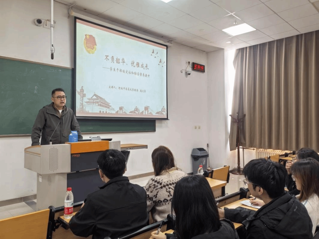 本网讯(文/王婧仪 图/张利敏)为提升学生干部综合素养与履职能力,推动学生工作高质量发展,2025年11月5日,本草书院在教学楼A104举办“不负韶华,优雅成长”学生干部培训。本次培训邀请校团委庞文奇老师主讲,本草书院育人导师段懿哲、毛辛飞及学生会全体成员共同参加。