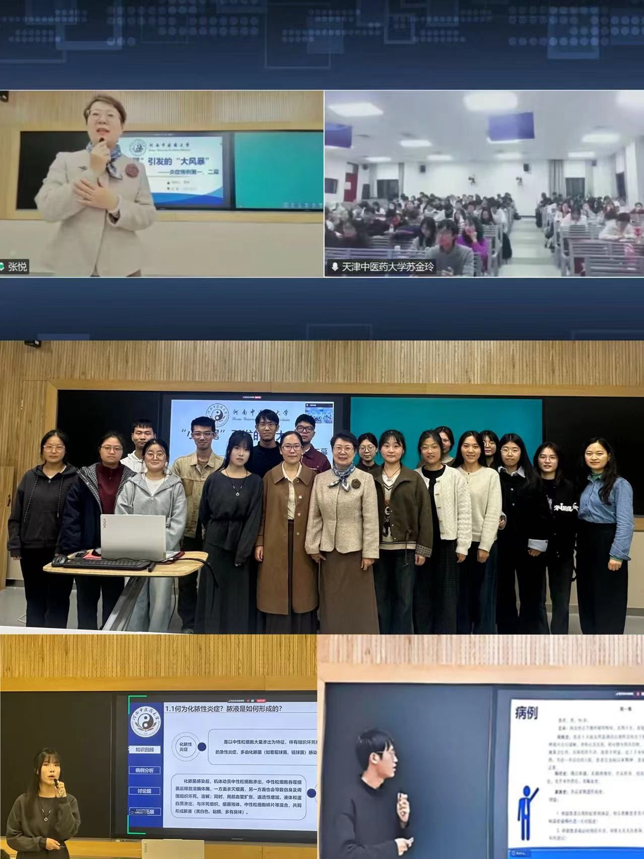 本网讯(文/张妍 图/陈薇 孙洁)五校联合病理学云端病例研讨会近期在医学院顺利召开。本次会议由河南中医药大学医学院牵头,联合南京中医药大学、天津中医药大学、云南中医药大学、辽宁中医药大学共同举办,吸引589名学生与64名教师齐聚云端,聚焦炎症病理核心议题深入交流。会议由天津中医药大学苏金玲教授主持,我校医学院病理学与病理生理学教研室副主任张悦教授担任主讲。