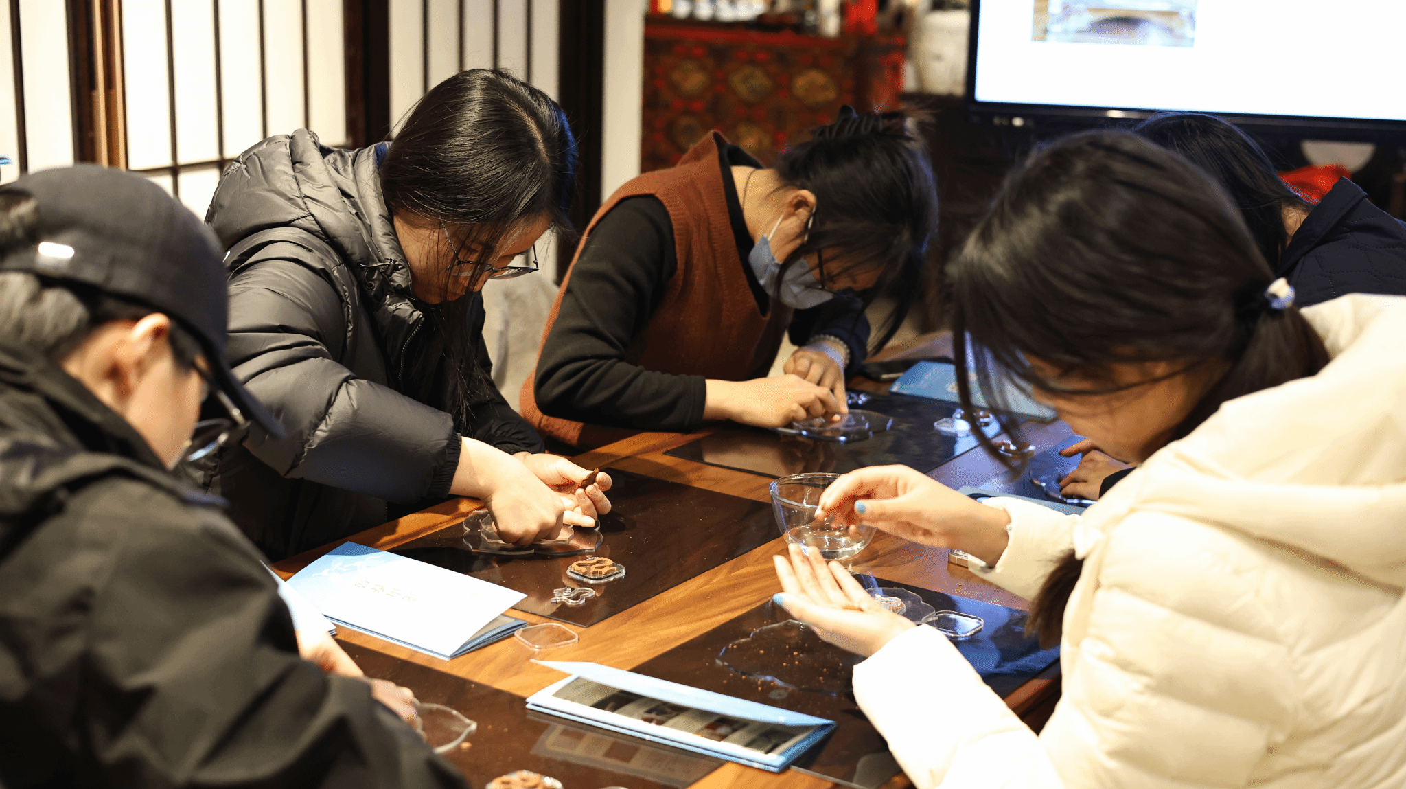 在实践体验环节,同学们在老师的指导下分组实操,亲手制作香牌与香片。按揉香泥、按压模具、修整成型,每一个步骤都一丝不苟。当承载着创意与心血的香品初具雏形时,同学们成就感十足,进一步体会到劳动的意义。