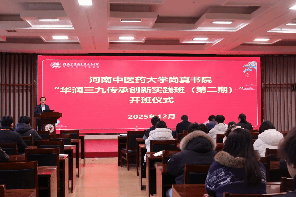 本网讯(文/刘晶晶、韩蒙赏 图/李怡露)2025年12月6日,尚真书院在图书馆第二报告厅举行“华润三九传承创新实践班(第二期)”开班仪式。华润三九国药事业部副总经理王俊浩,河南华润三九现代中药有限公司总经理李永、副总经理邹贝贝,尚真书院党委书记、执行院长李志轩出席仪式,实践班第二期全体学员共同参加了活动。