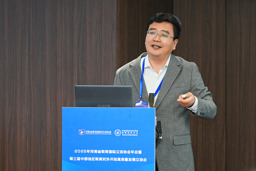 本网讯(文/江源 图/刘怡然)2025年11月30日-12月2日,河南省教育国际交流协会暨第三届中部地区对外开放高质量发展交流会在郑州举办。期间,我校作为河南省境外办学联盟主委单位,联合郑州电力高等专科学校,举办了境外办学专题国际论坛。本次论坛聚焦新时代教育对外开放的重点领域,围绕境外办学模式创新、产教融合深化、海外人才培养机制建设等议题展开深入探讨。我校国际合作处处长朱剑飞主持。