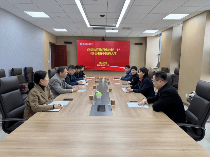林俊堂首先代表学校致辞。他对鞠利雅一行的到来表示热烈欢迎,并介绍了河南省基本省情、河南中医药发展状况及学校在人才培养、科学研究、社会服务与国际交流方面取得的成果。林俊堂表示,希望以此次交流为契机,与法方在神经精神心理领域及精准医疗方面探索实质性的合作路径,共同推动中医药与现代医学的融合创新发展。