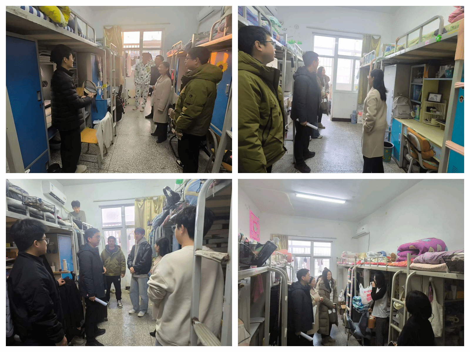 深入宿舍一线,传递温暖关怀。学院领导老师们深入学生宿舍进行走访,详细询问大家的学习、生活状况,并送上了学院的关心与问候,叮嘱同学们注意冬季防寒保暖与人身财产安全,鼓励他们珍惜时光、勤奋学习、全面发展。