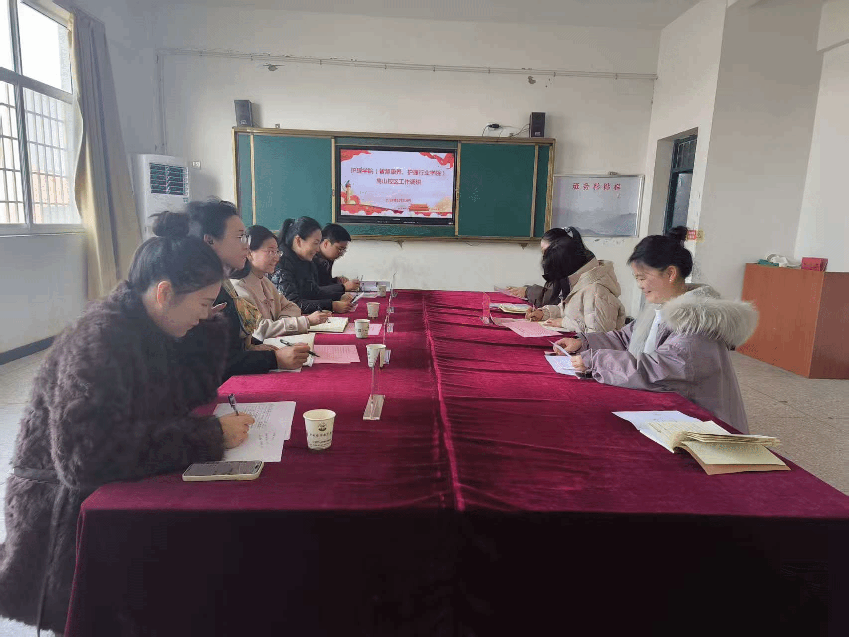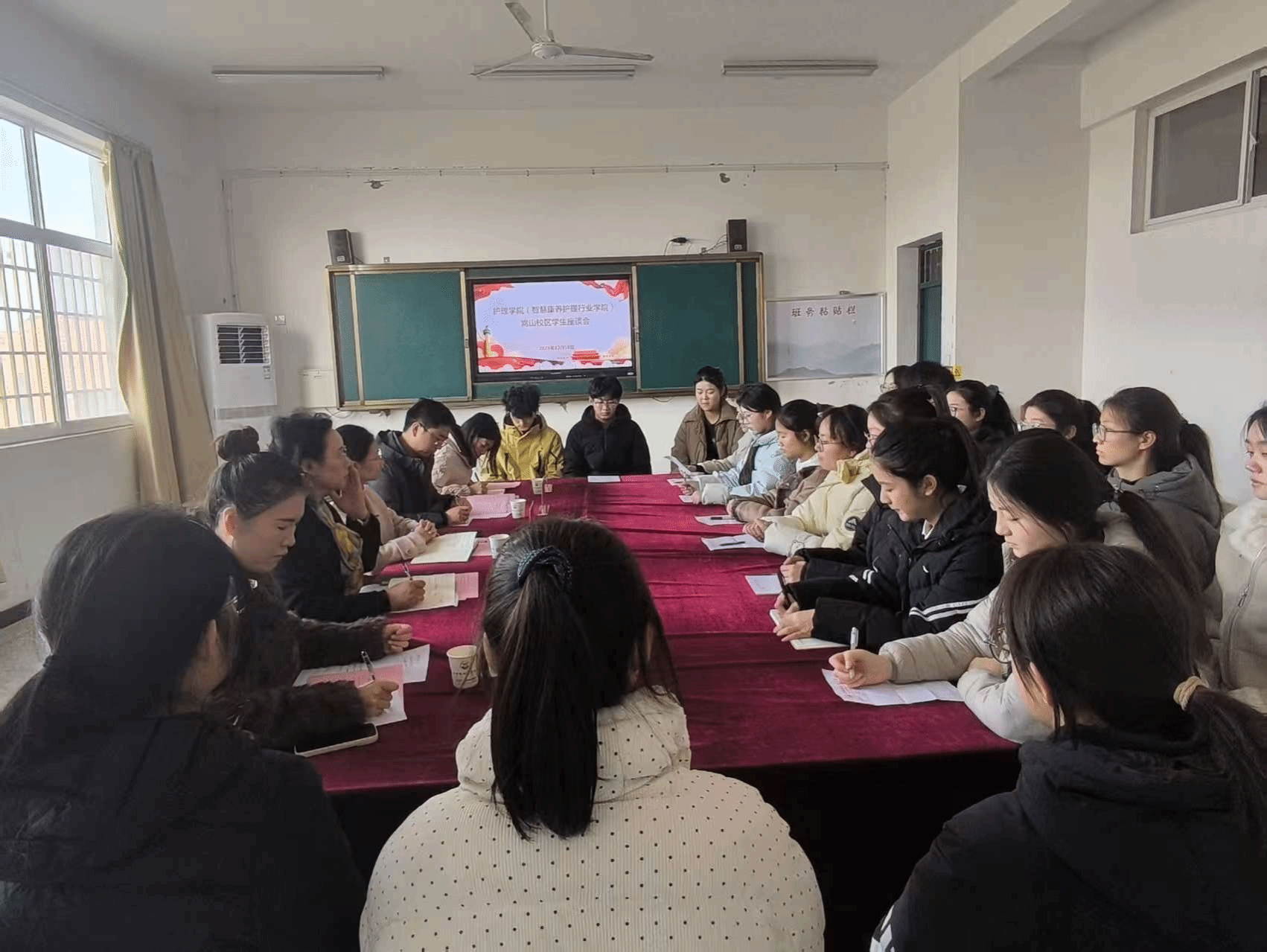 本网讯(文/谭亚男 图/学工办)为深入了解登封校区学生的学习生活情况,进一步加强校区协同联动,2025年12月18日,护理学院(智慧康养护理行业学院)党委副书记杨雪、副院长刘晓辉带领辅导员、班主任一行赴登封校区开展走访调研。登封校区本科部负责人、教师代表及学生代表共同参与相关活动。