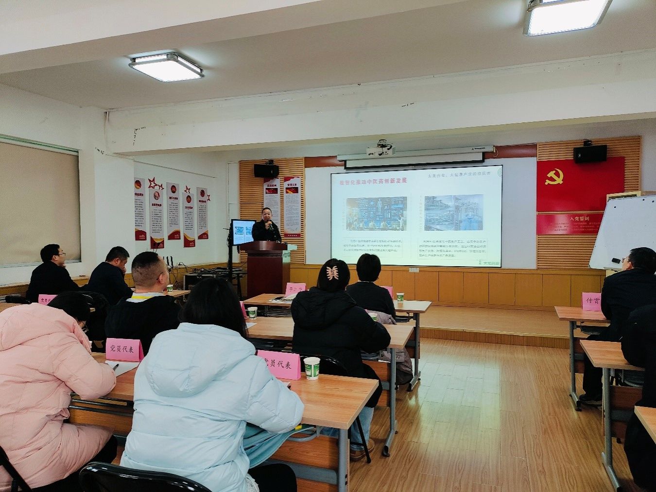 双方在企业研发中心会议室举行联合主题党日活动,活动由太龙药业推广部经理、本草书院行业班主任牛建斌主持。李江华详细介绍了企业基本情况及党建工作特色,围绕国家“十五五”规划,引导学生坚定理想信念,把握行业发展机遇。武永勇结合书院校友工作、院企合作实际,阐释了书院深入了解行业发展趋势,立足专业方向为学子科学规划未来的务实举措。