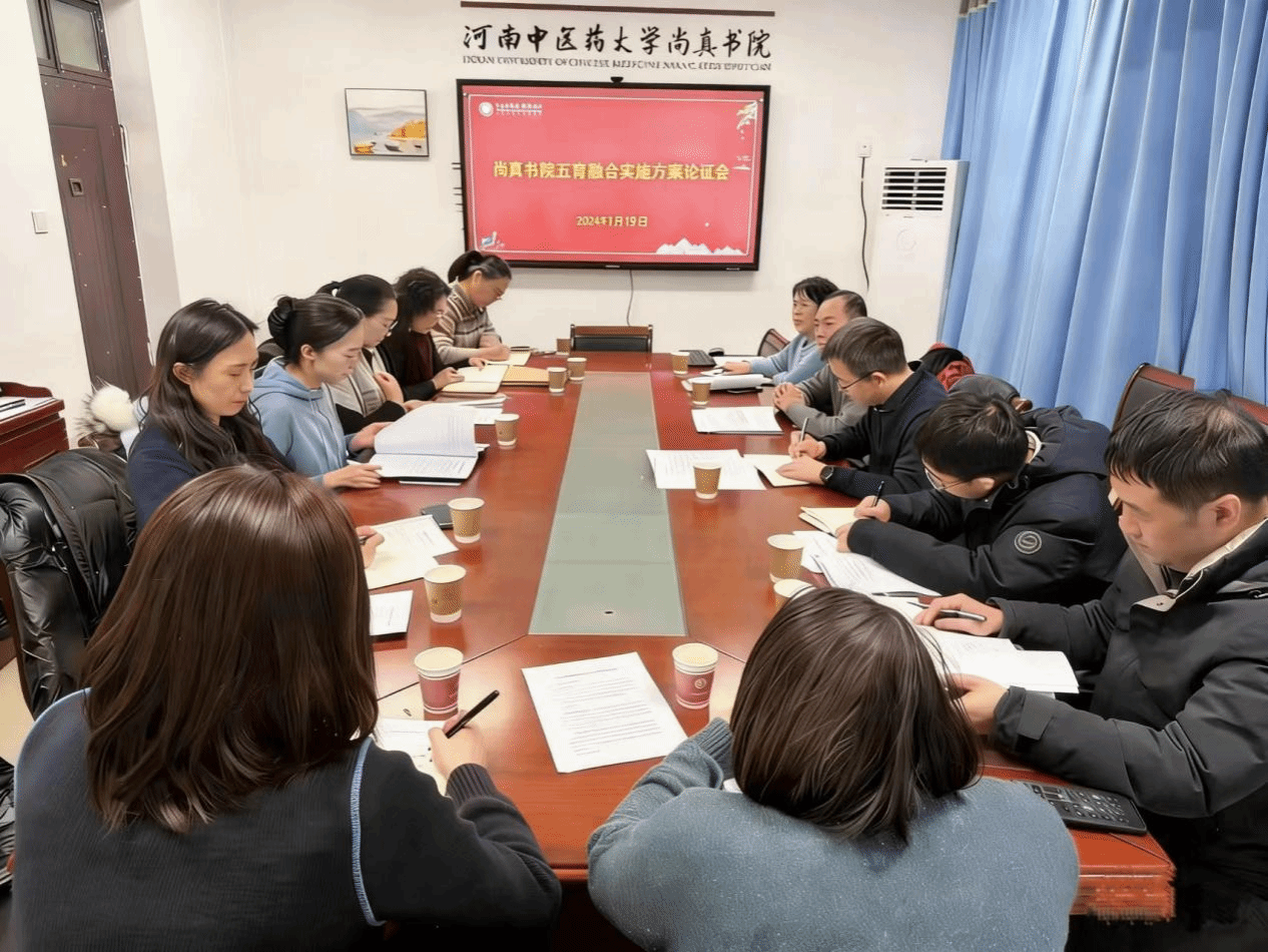 本网讯(文/谢志豪 图/侯相俊)为进一步夯实书院育人根基,完善五育融合体系建设,2025年1月19日,尚真书院在5号楼153会议室召开五育融合实施方案论证会。会议邀请尚真书院关工委常务副主任张云芳,副主任贾成祥、张峥丽,校党委学工部副部长、学生处副处长、心理健康教育与咨询中心副主任郭彦霞,校团委副书记郭薇等莅临指导,共同为书院五育融合实施方案建言献策。书院领导班子,五育融合体系建设各负责人参会。