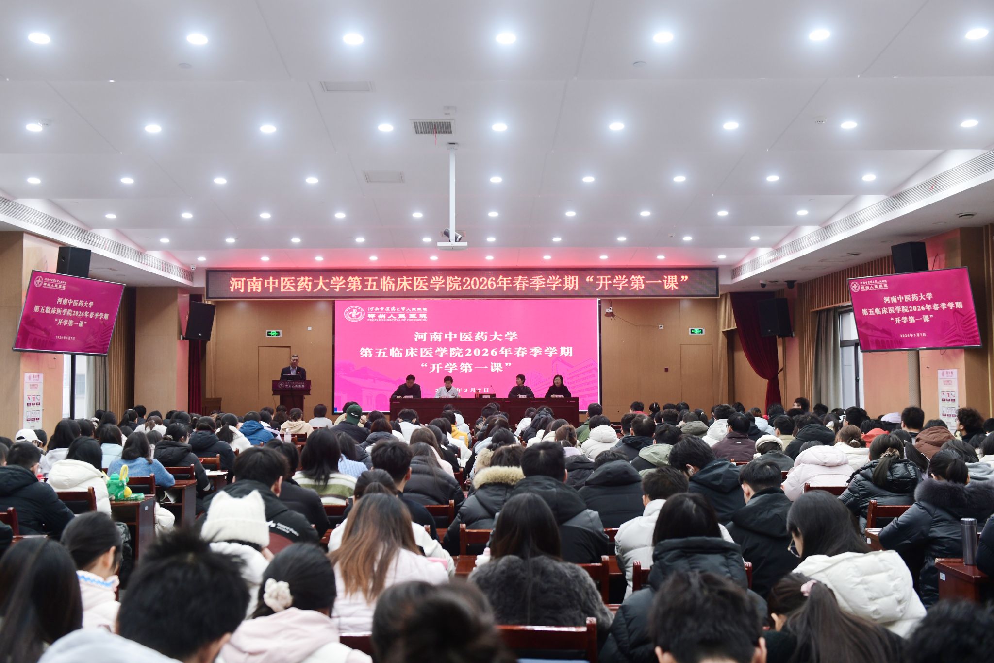 本网讯(文/图 夏文娜 孙芸昊)春回大地,万象更新。为引导学生以昂扬姿态开启新学期,2026年3月7日,第五临床医学院在文化路校区门诊八楼会议室举行2026年春季学期“开学第一课”系列培训。学院全体班子成员、相关职能部门负责人、辅导员及2023级临床医学专业本科生共同参加学习。