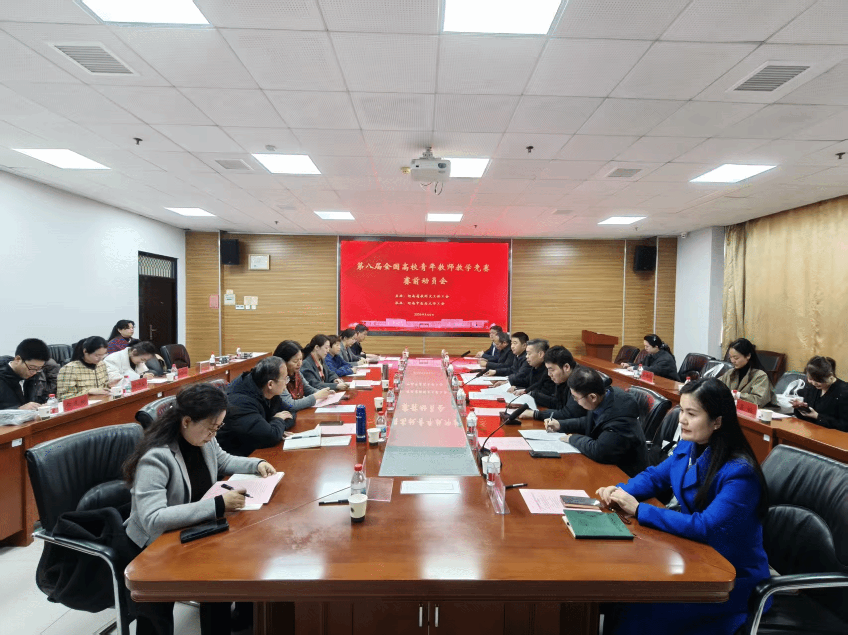本网讯(文/图 荣文慧)春潮涌动启新程,匠心育人正当时。2026年3月6日,第八届全国高校青年教师教学竞赛赛前动员暨河南选手集中培训活动在我校龙子湖校区顺利举行。河南省教科文卫体工会主席张学勇,河南省教育厅人事处三级调研员张志海,我校党委副书记朱建光,以及来自省内的指导专家、备赛选手及所在高校的工会副主席、各职能部门负责人等参加会议。会议由河南省教科文卫体工会副主席王晨主持。