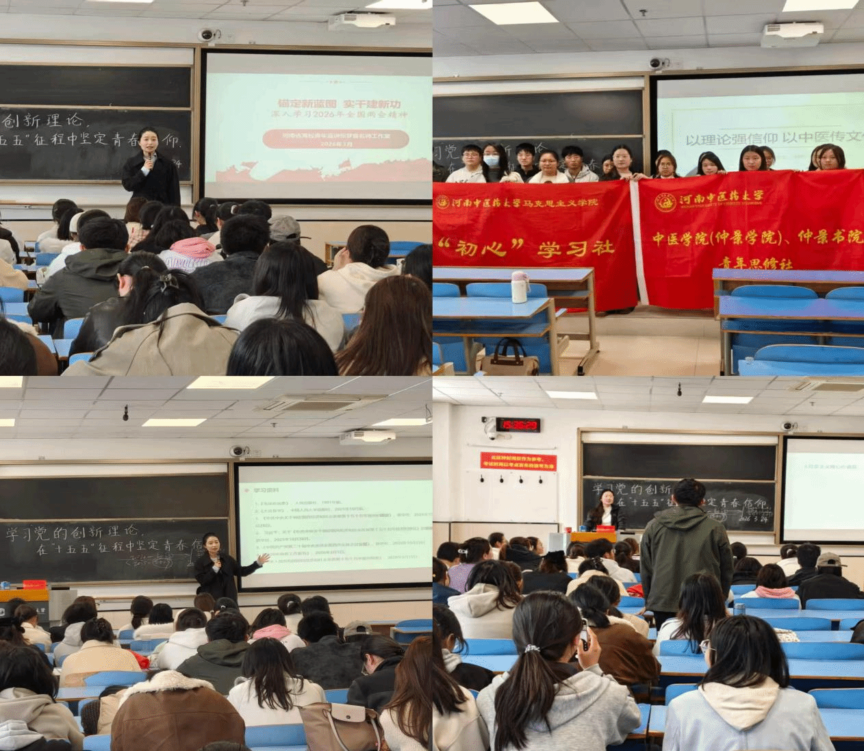 本网讯(文/王宁 图/贺玟涵)为深度融合中医药文化与科学理论,锚定“十五五”发展蓝图,引领青年学子勇担使命、矢志成才。2026年3月24日下午,中医学院(仲景学院)、仲景书院青年思修社联合马克思主义学院“初心”学习社,共同举办“学习党的创新理论,在‘十五五’征程中坚定青春信仰”主题宣讲活动。活动特邀河南省高校青年宣讲名师工作室主持人、河南青年马克思主义社团优秀指导教师张梦露担任主讲嘉宾,各年级学生代表、社团全体成员参加活动。