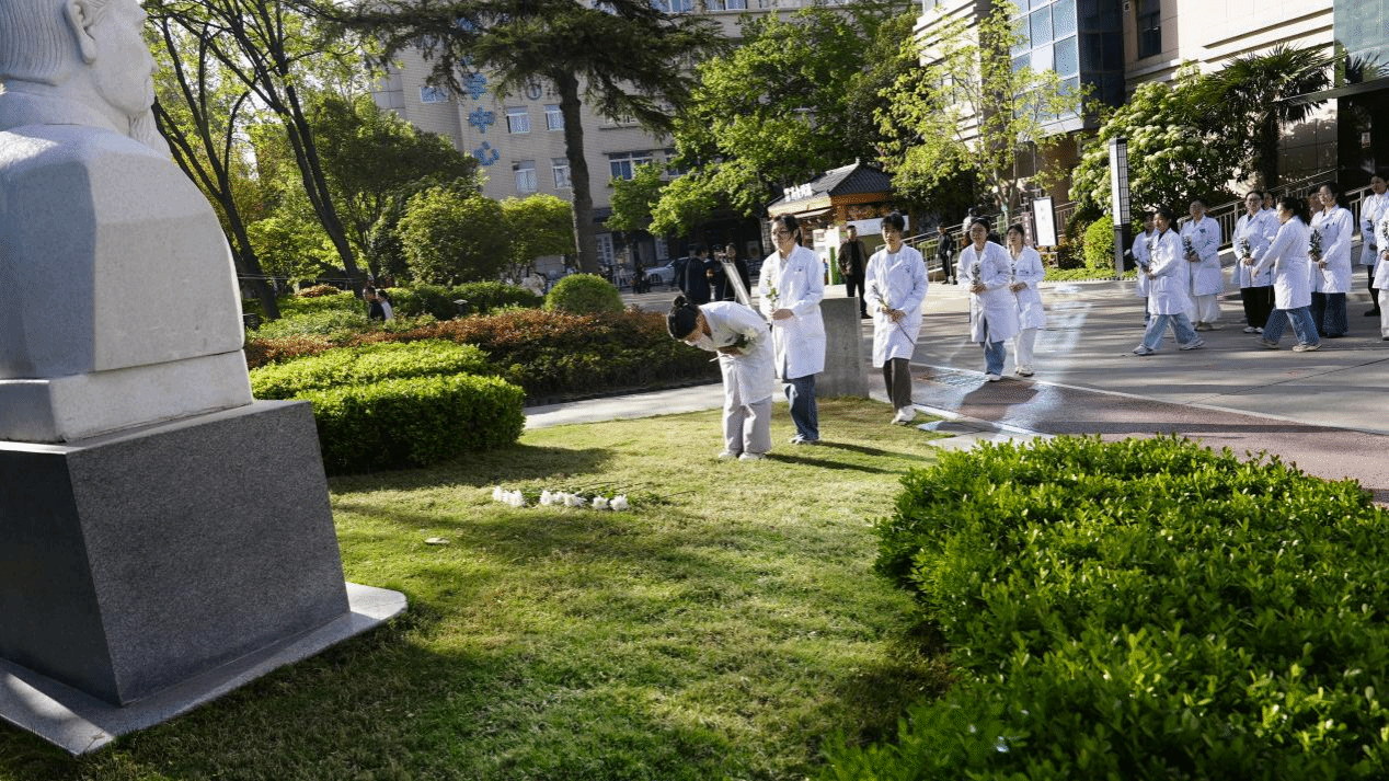 本网讯(文/魏佳琳 图/元峥)2026年4月4日上午,在清明节来临之际,一附院在人民路院区举行“延泰誓言”传承誓言活动。“延泰社区”硕博研究生代表集体拜谒建院元老彭延泰先生雕像,在缅怀先辈、致敬先贤的同时,传承先生精神,厚植家国情怀,勤学笃行、求实创新,努力成长为堪当大任的时代新人。副校长、一附院党委书记任献青,一附院院长王海峰等在郑院领导参加活动。仪式由党委副书记张婉红主持。