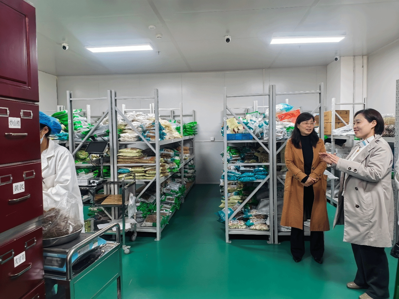 高巍一行还参加了企业物流中心及煎药中心,实地了解了现代化仓储车间、煎药车间及中药饮片仓库运行情况,进一步加深了对企业生产运营及岗位需求的直观认识。