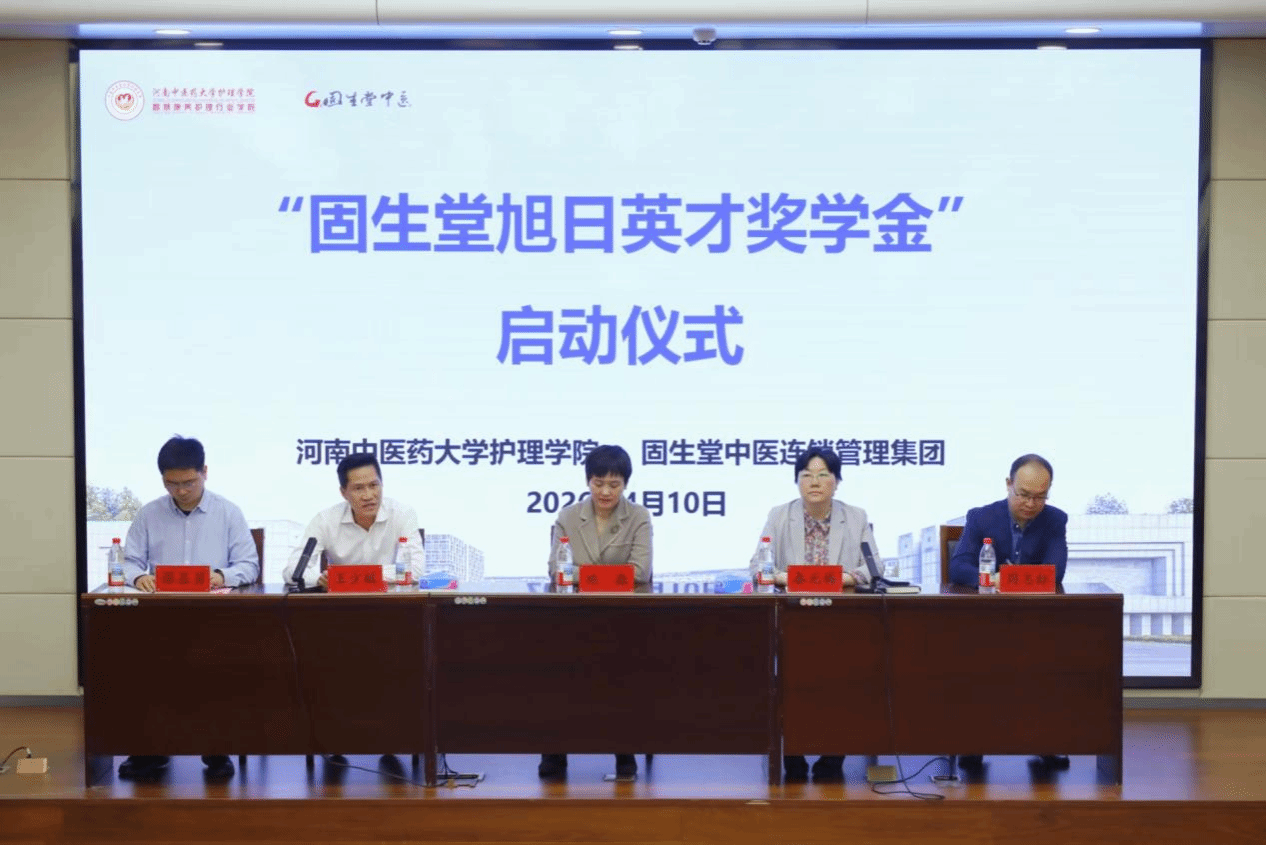 本网讯(文/张澍 图/王垣晓 魏卓妍 王千文)为深化产教融合、推进校企协同育人,创新中医药护理人才培养模式,2026年4月10日,护理学院(智慧康养护理行业学院)在俊学楼A114报告厅举行“固生堂旭日英才奖学金”启动仪式。固生堂中医连锁管理集团合伙人、副总裁王少敏,河南区域总经理周志标,学校社会合作办公室副主任施淼,护理学院院长秦元梅及师生代表100余人共同出席。仪式由学院学工办主任谭亚男主持。