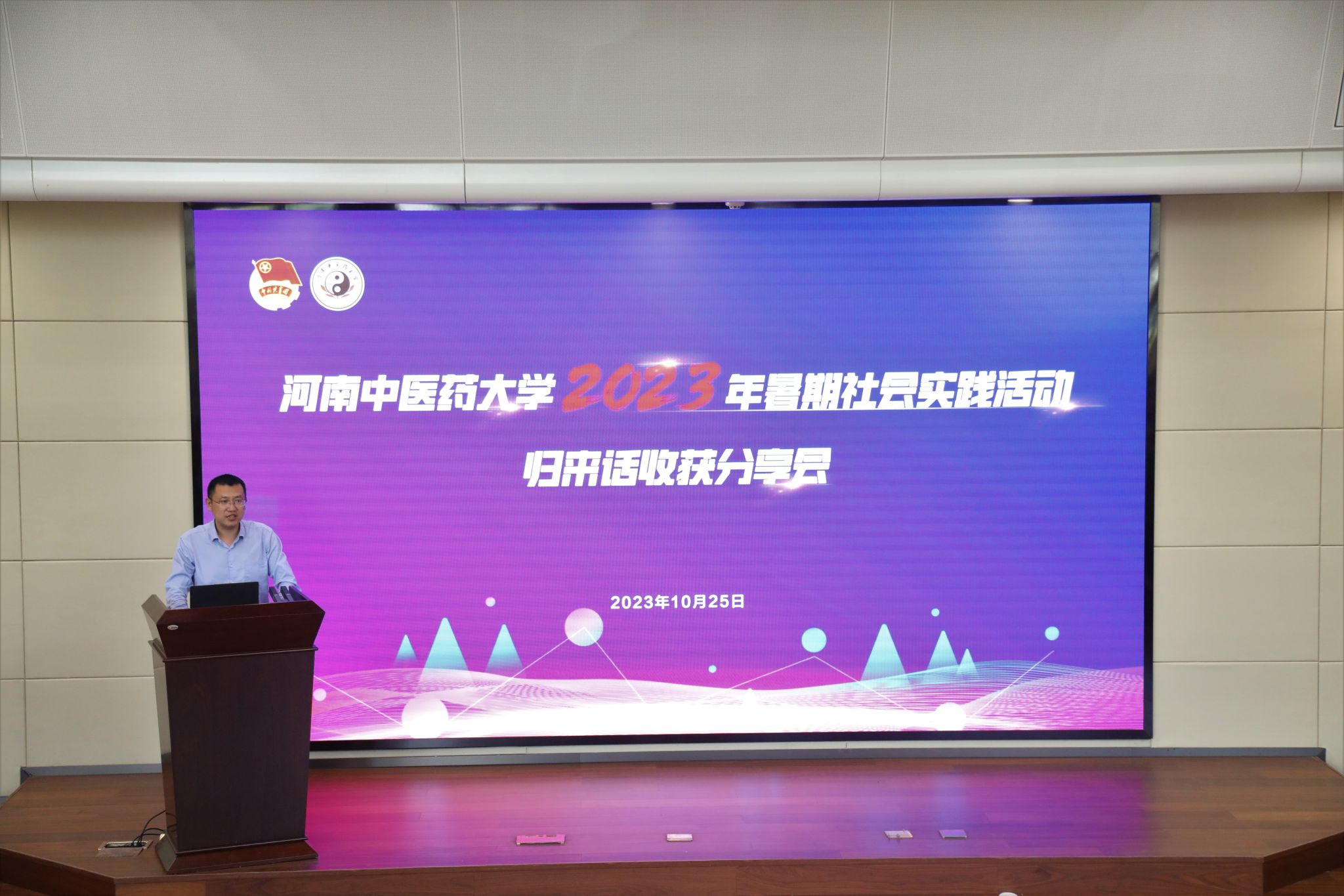 本网讯(文/图 郭薇) 为促进同学们交流分享暑期社会实践活动的经历和收获,2023年10月25日,2023年暑期社会实践活动归来话收获分享会在我校俊学楼A114报告厅举行。校团委老师、各学院(书院)社会实践小分队、各学生组织代表等共同参加本次活动。分享会由本草书院辅导员段懿哲主持。