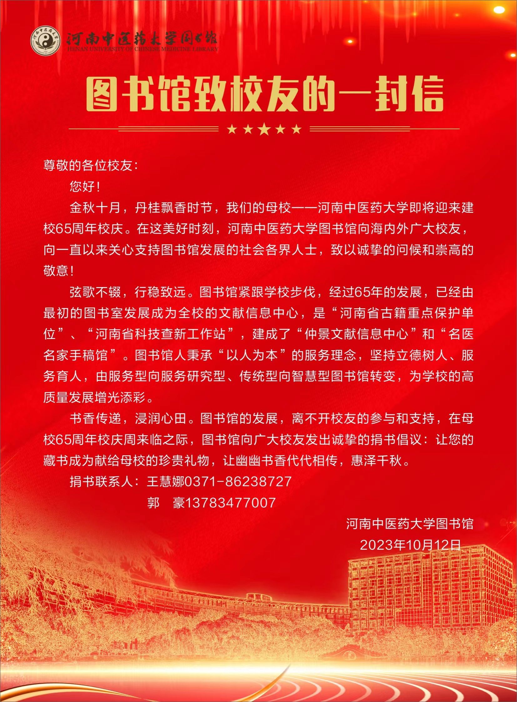 图书馆致河南中医药大学校友的一封信